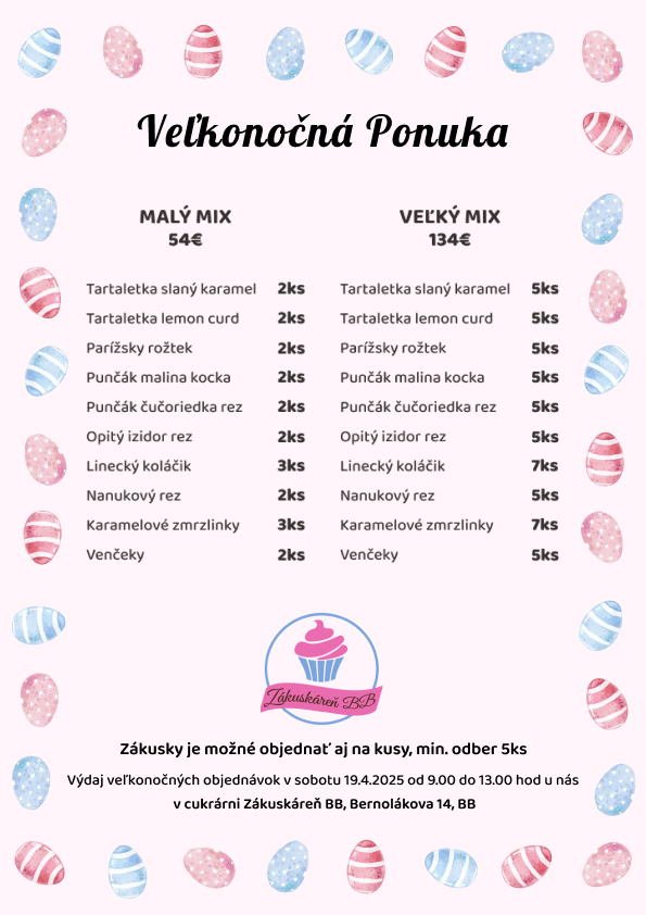 Vaše objednávky stále prijímame cez messenger a email. Odber koláčikov: v sobotu 19.4.2025 medzi 09:00 - 13:00.